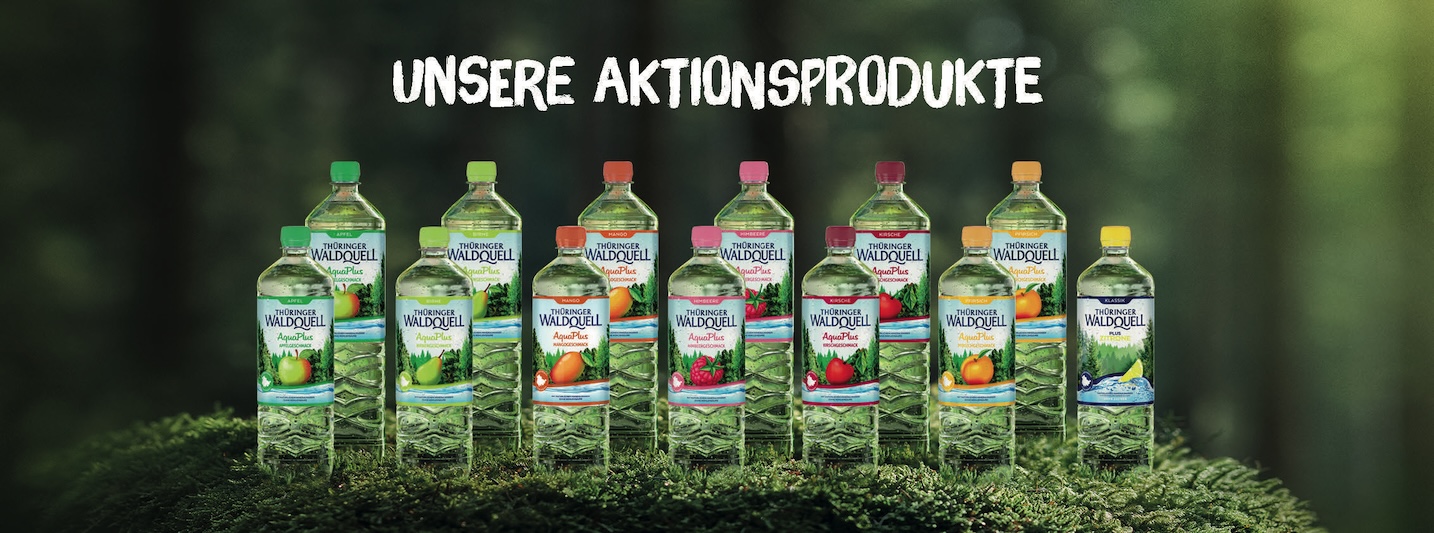 * Aktion gilt für alle Sorten Thüringer Waldquell AquaPlus in der 1,5 l PET-Cycle Flasche und 1,0 l PET-Einweg Flasche, sowie Thüringer Waldquell Plus Zitrone in der 1,0 l PET-Einweg Flasche.